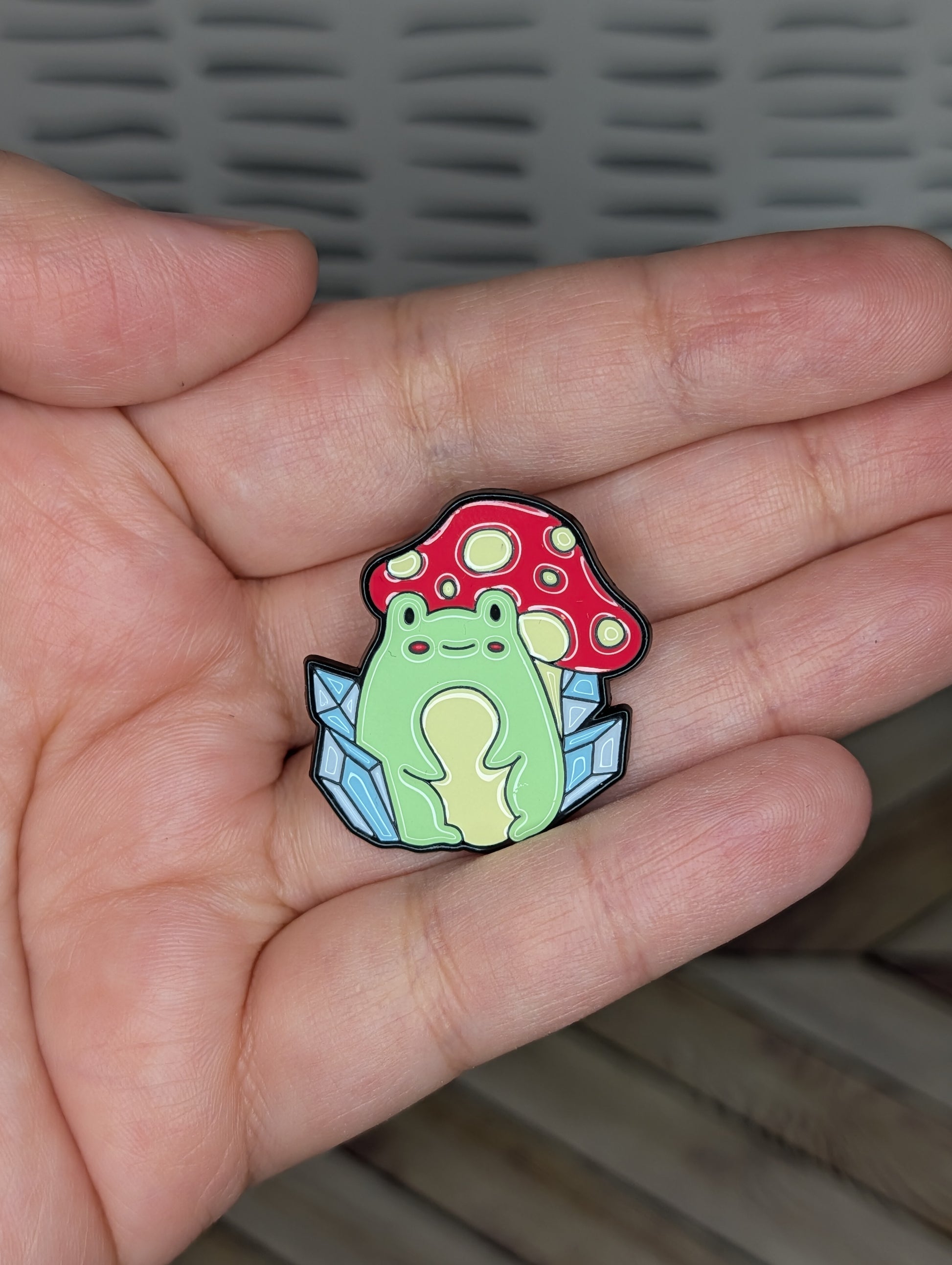 Crystal Mushroom Frog Enamel Pin