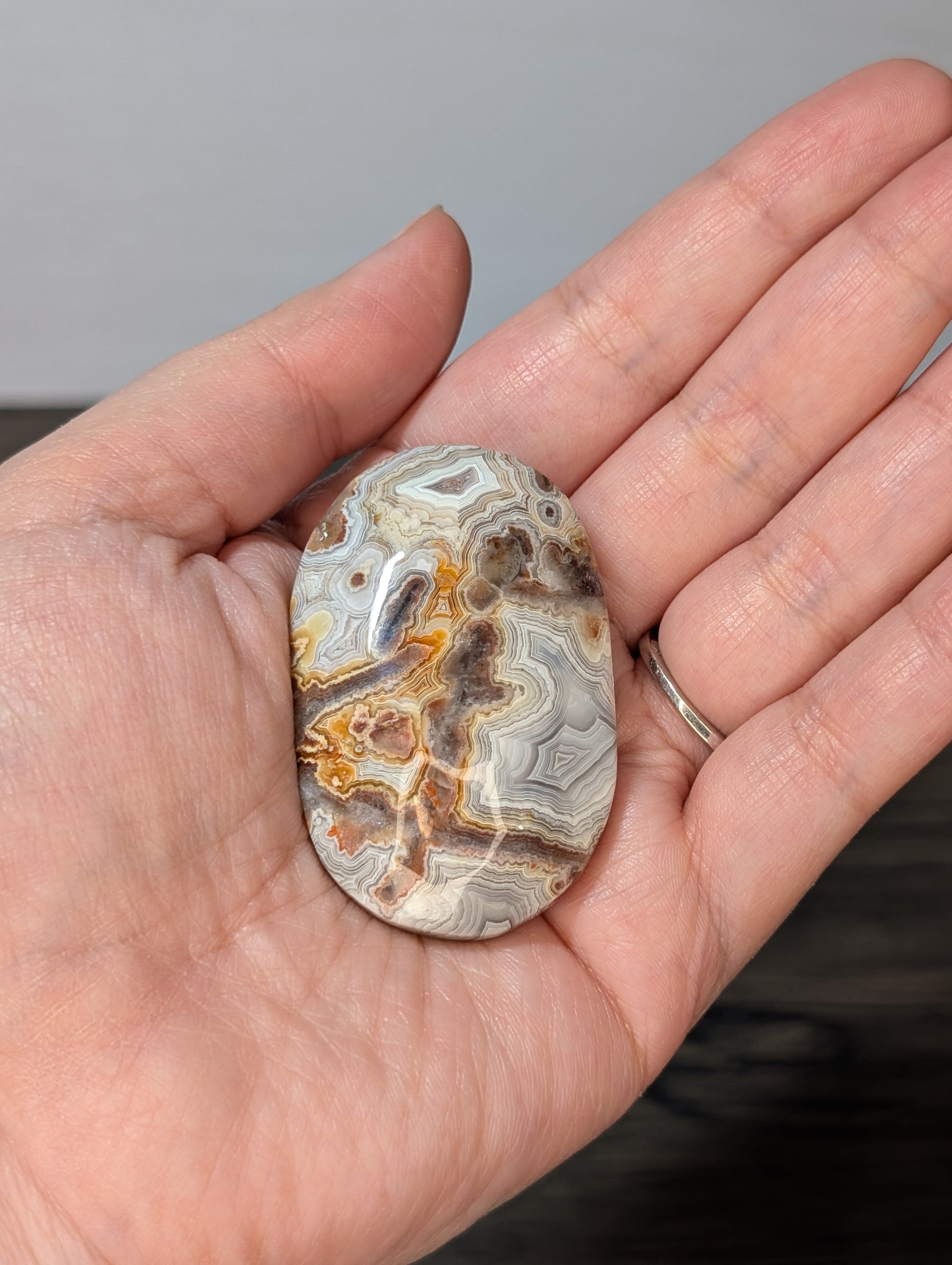 Red Mexican Crazy Lace Agate Palm Stone